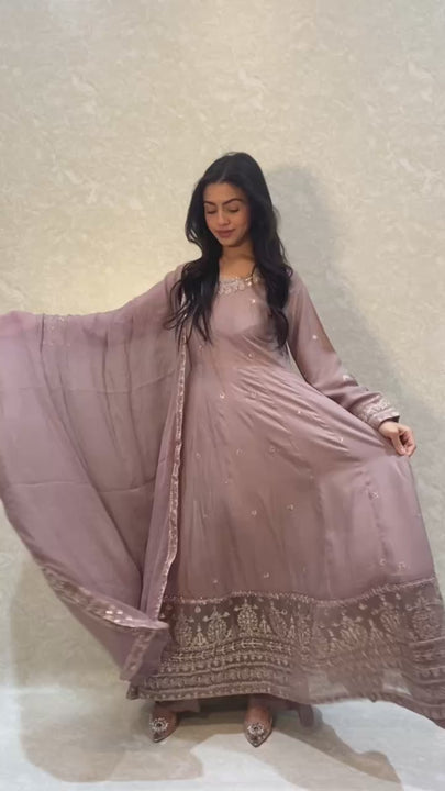 - Stunning 3 piece sequin embroidered frock and plazzo suit.