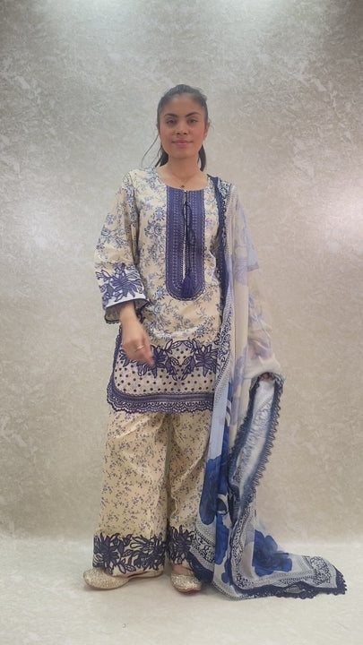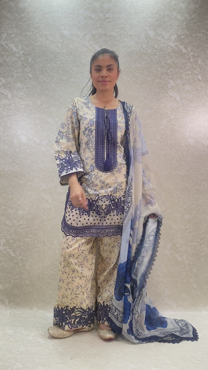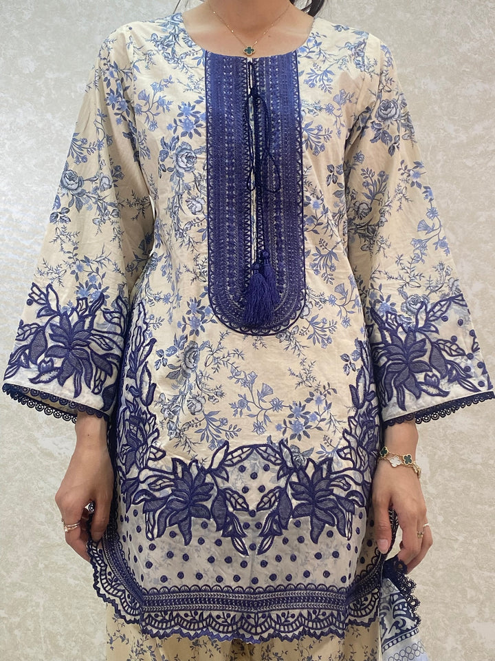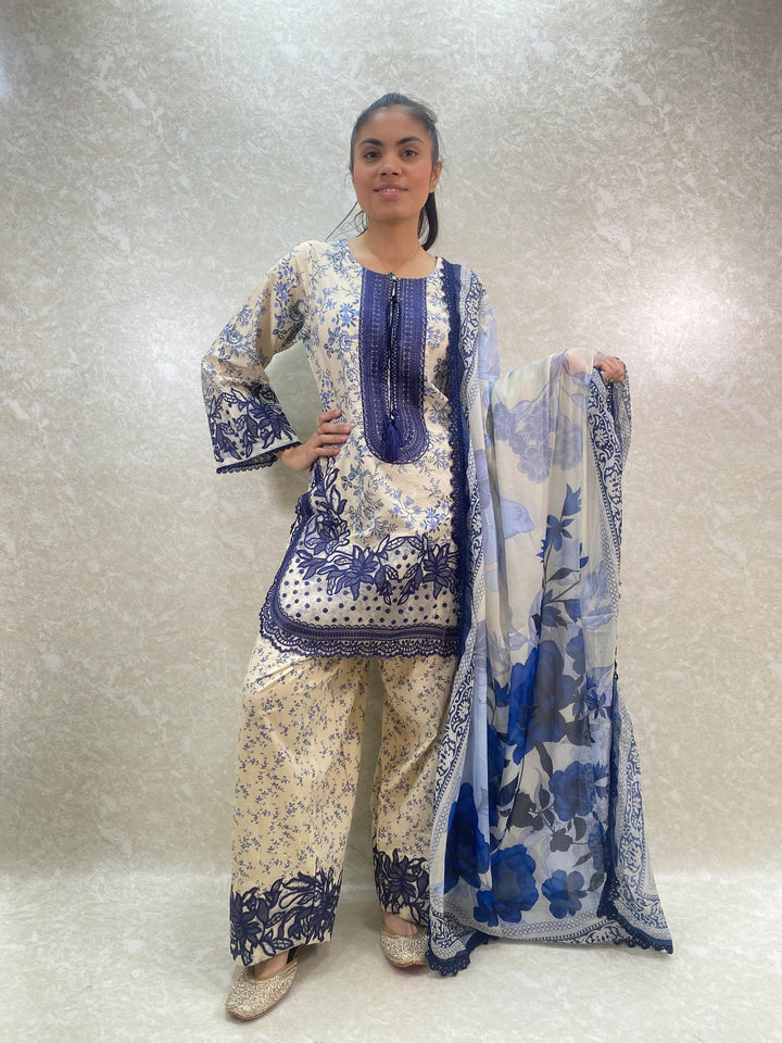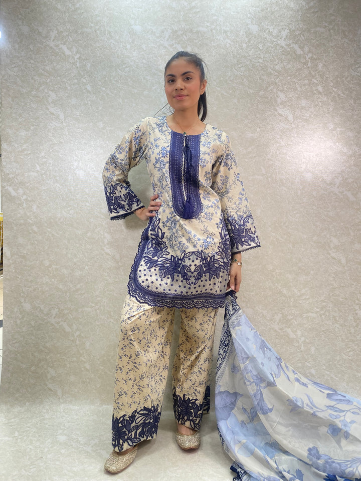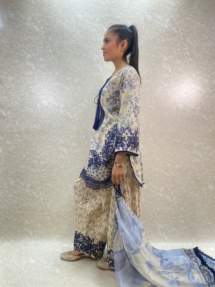 - Stylish 3 piece stylish printed kameez and farshi salwar suit