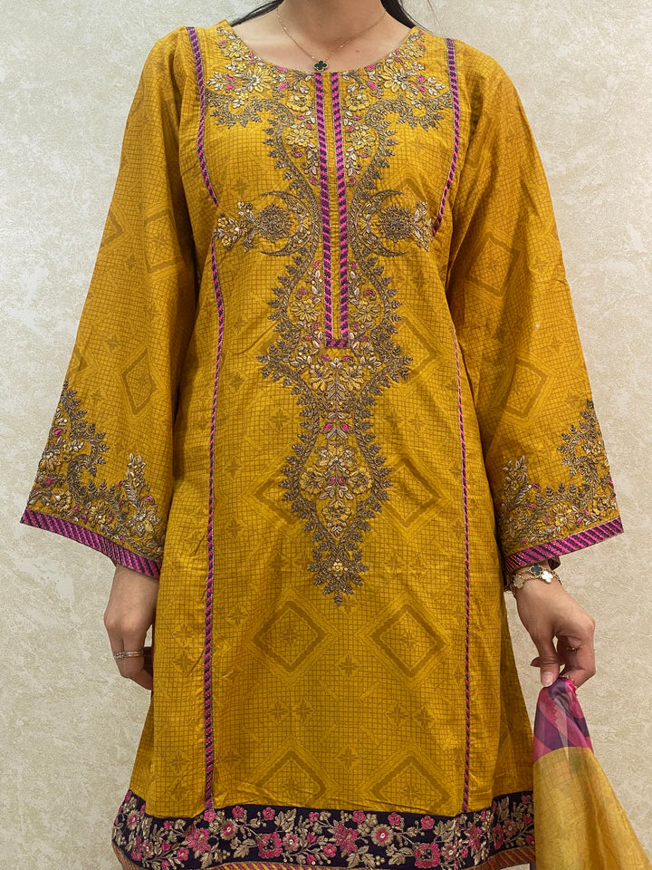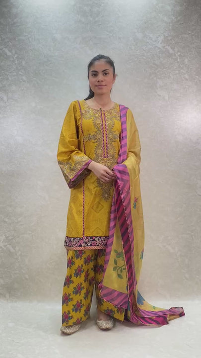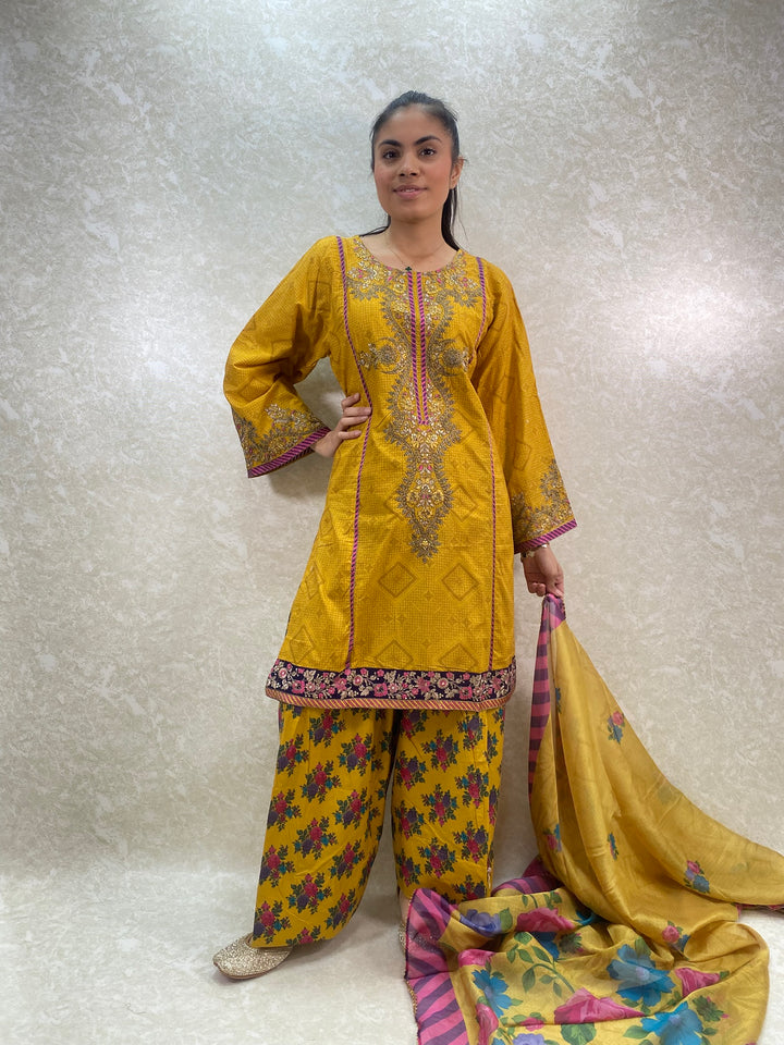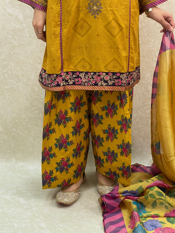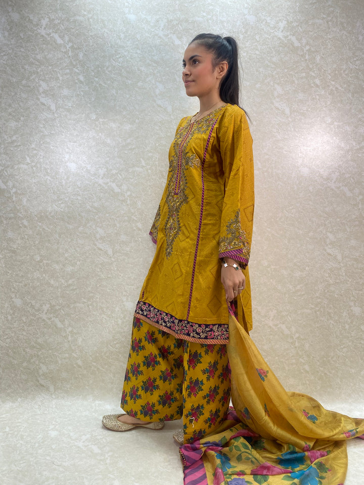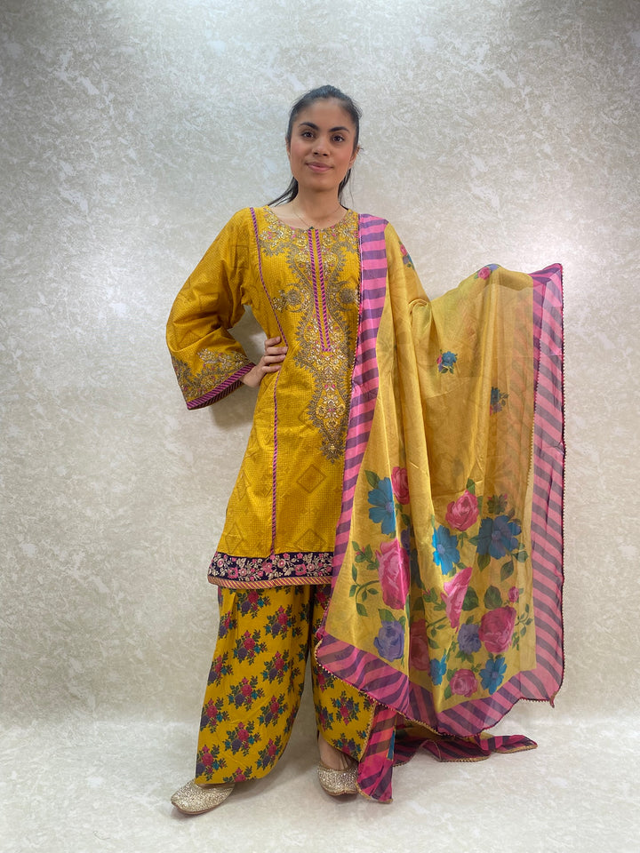 - Stylish 3 piece stylish printed kameez and farshi salwar suit
