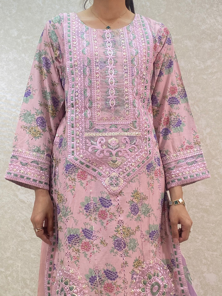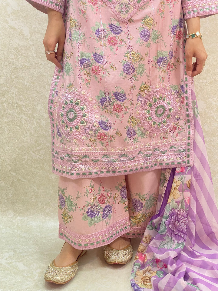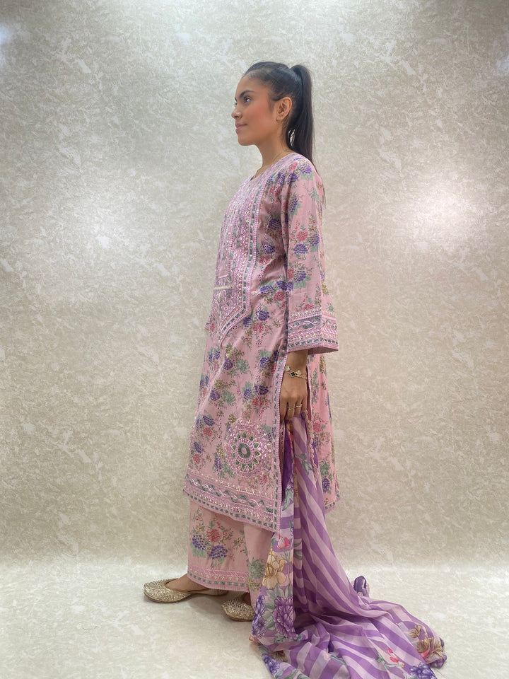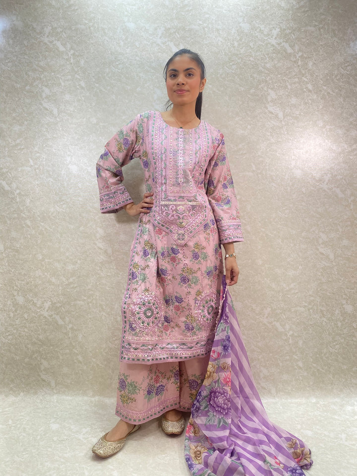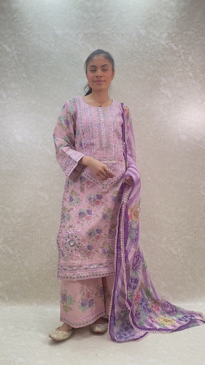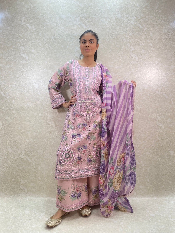 - Stylish 3 piece stylish printed kameez and plazzo suit