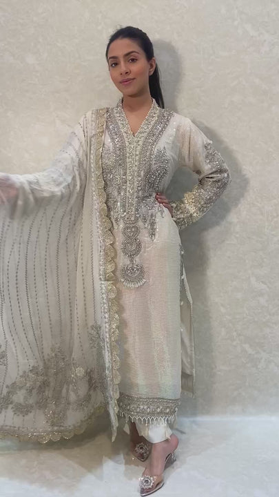 - Stunning 3 piece full sequins and embroidered kameez and trouser suit.